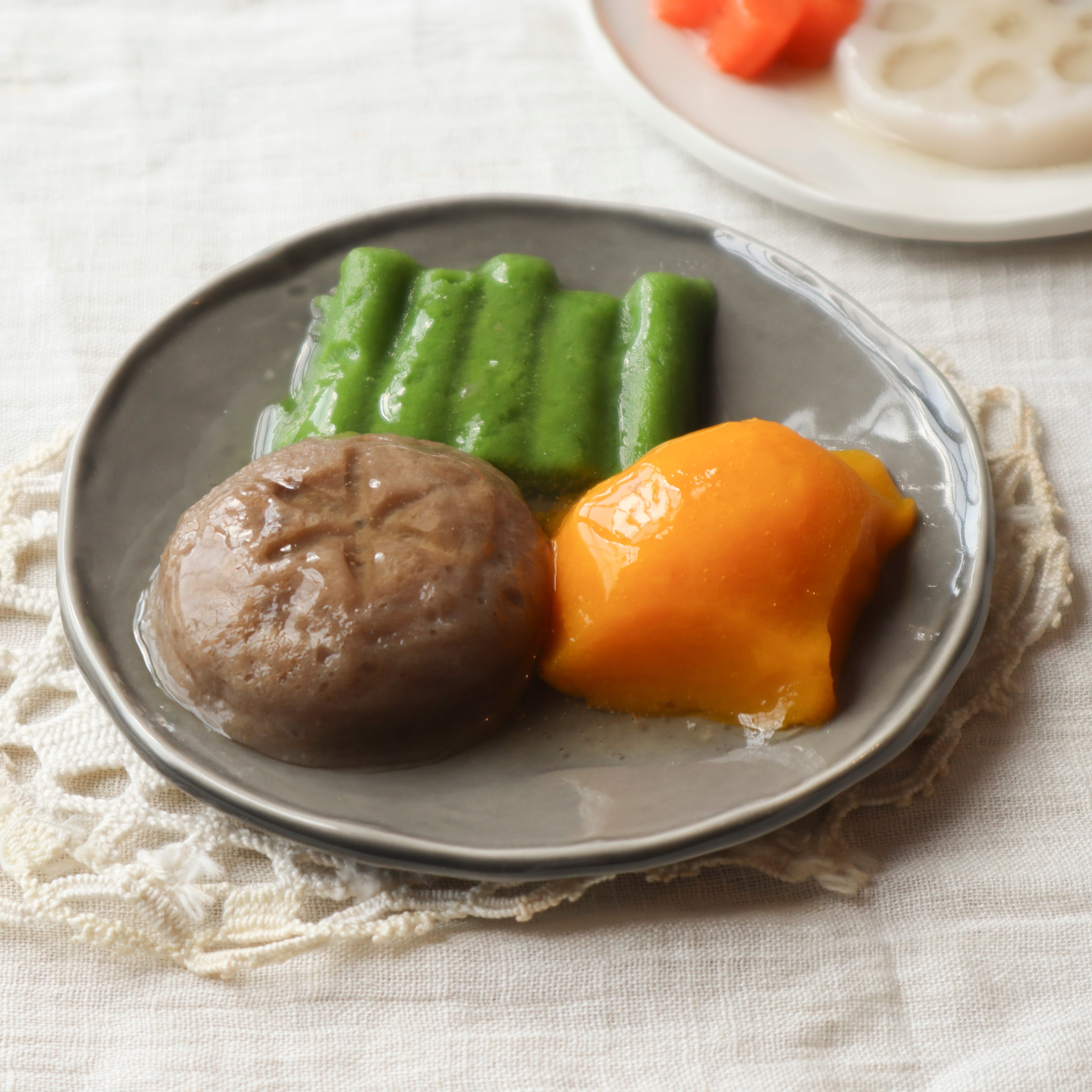 甘み豊かなかぼちゃと香り高いしいたけに、インゲンの緑を添えて。 どこか懐かしい、和のやさしさを感じる3種の野菜です。